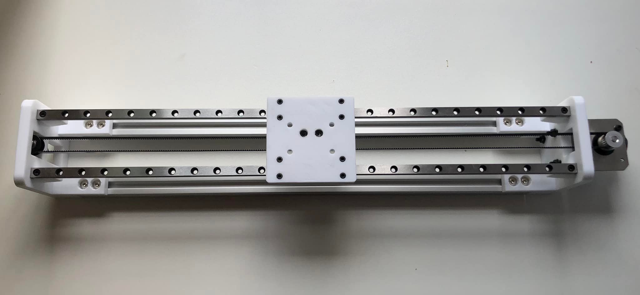 Este guia linear é baseado no princípio carreiras de esferas recirculantes, gerando diversas vantagens como redução de atrito, com um deslocamento máximo de 405 mm, alta precisão de posicionamento, trabalho em alta velocidade, além de outros benefícios.